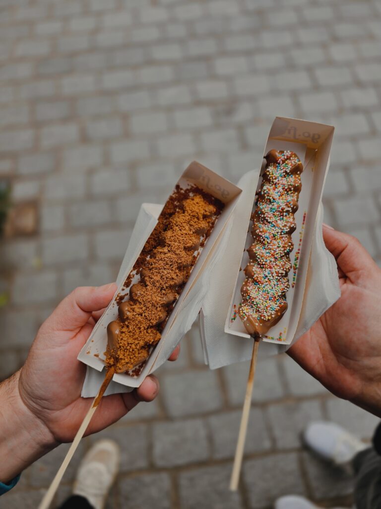 From there on, the city unfolds like a fairytale. It feels like stepping into a beautifully preserved medieval painting. Cobbled streets and tranquil canals reflect centuries-old architecture. Don’t let the picture-perfect image fool you, you will find everything here. Staying true to its country’s heritage, I’ve had the most delicious waffles on a stick here (on go.fre) and, trust me when I say, one of the best, juiciest, tastiest burger at Bellicious. We waited a bit longer than expected on a tight schedule, but the food was 100% worth it.