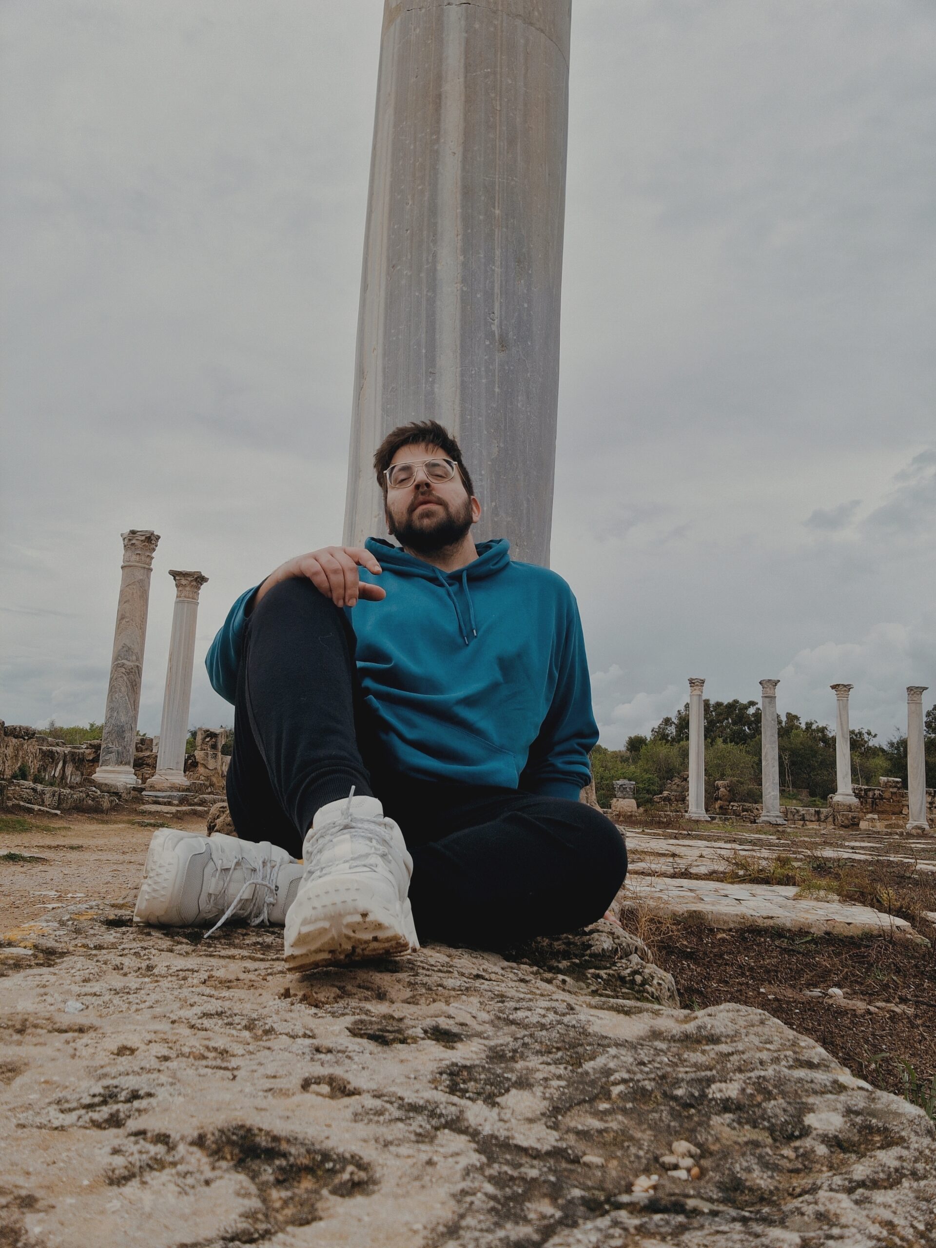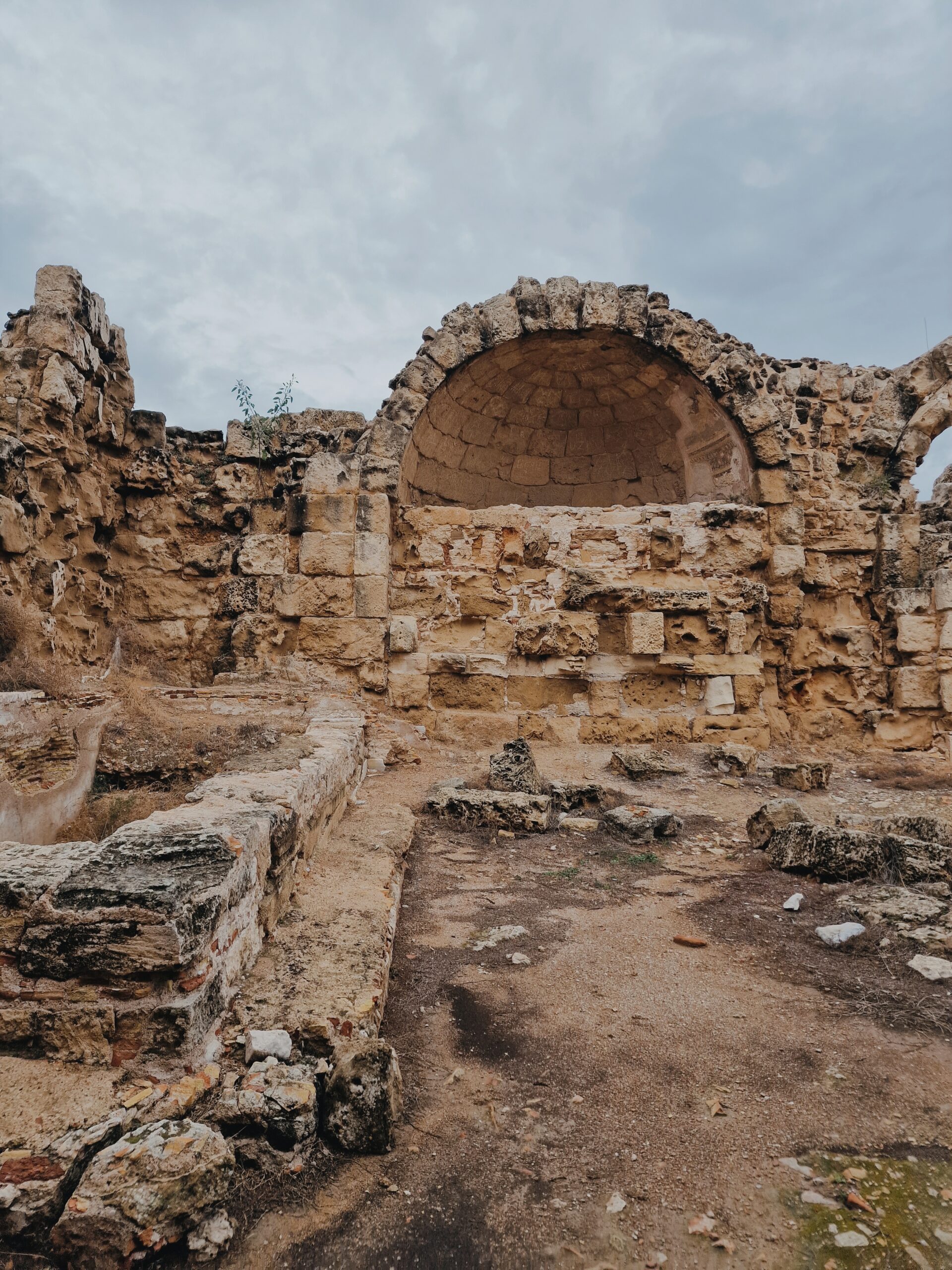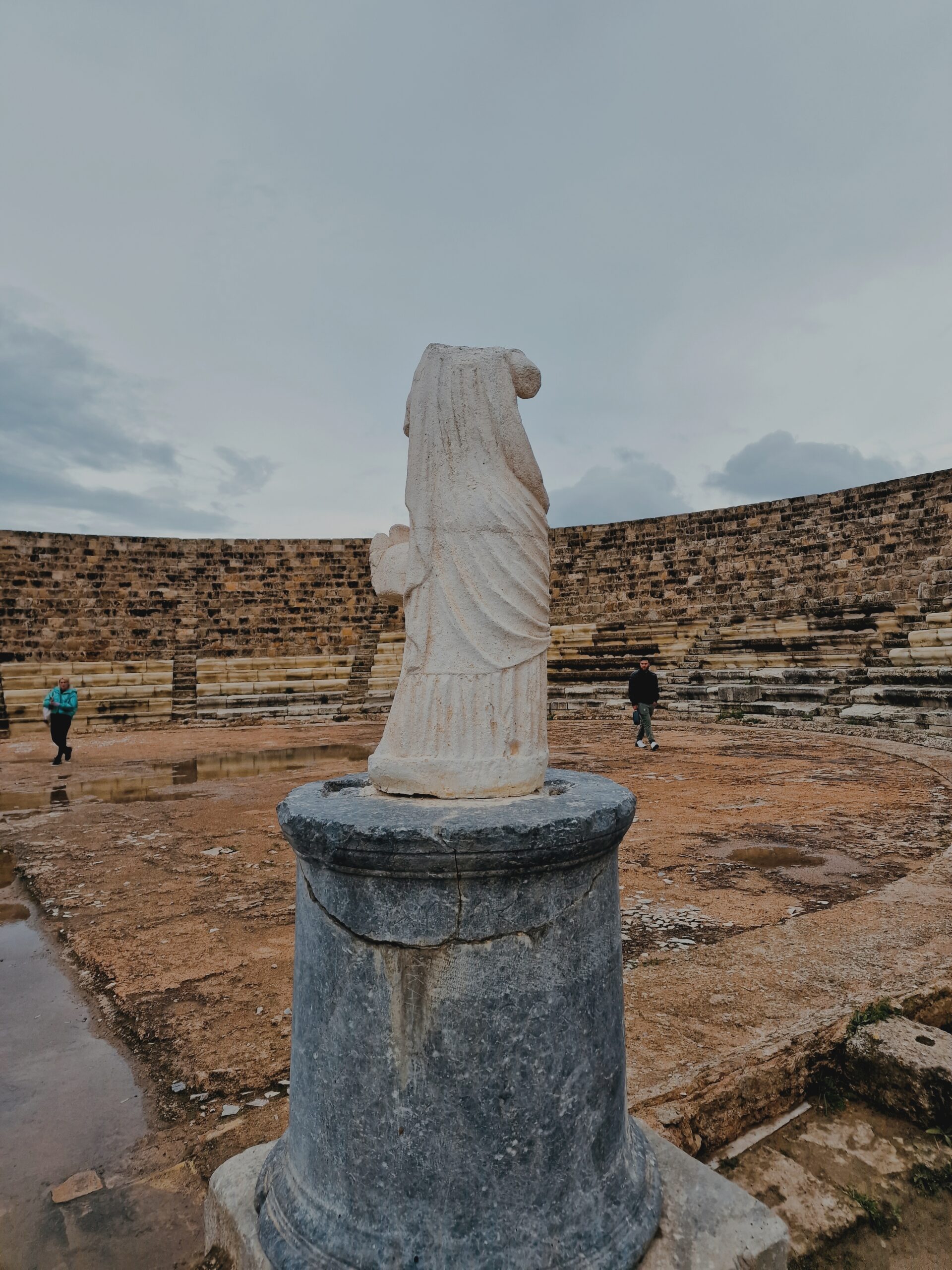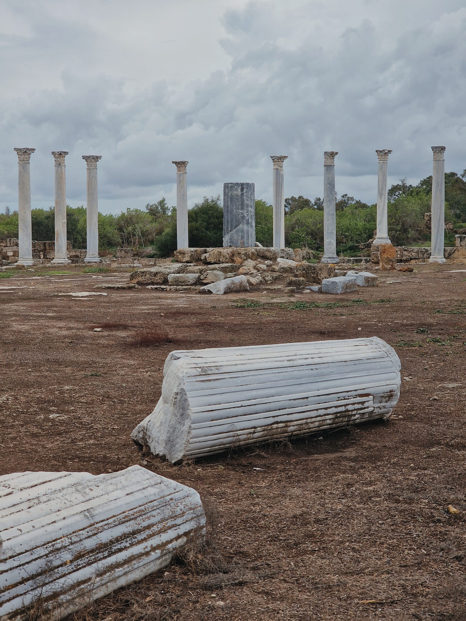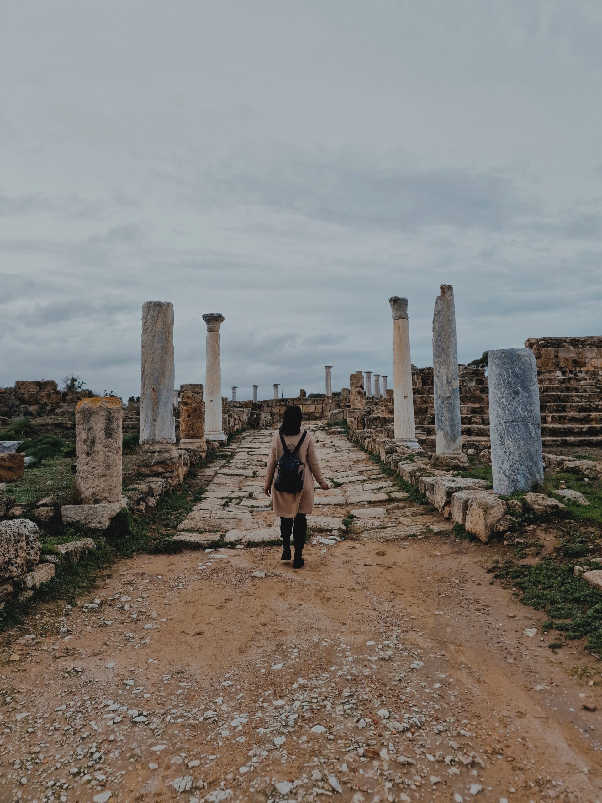 We finally arrived after a 1-hour drive in a moody, grey weather, we paid the entrance fee of €1 and walked from the kiosk to the archaeological site. When I stepped inside, the Ancient Gymnasium slowly unfolded in front of me, like a picture of my childhood coming to life. The Gymnasium is one of the most impressive ruins you’ll find at Salamis. After a massive earthquake in 76 AD, it was rebuilt by the Roman Emperor Trajan and his cousin Hadrian — yes, the same Hadrian who later built the famous wall in Britain.