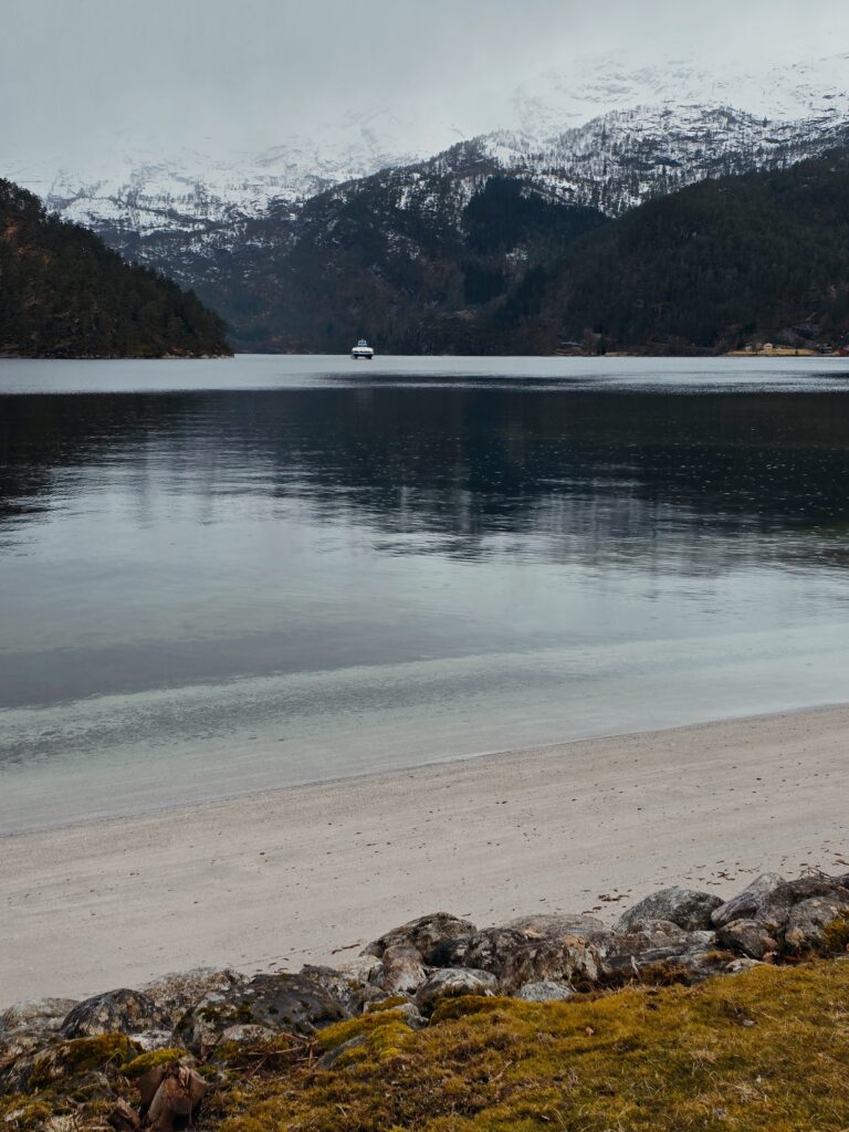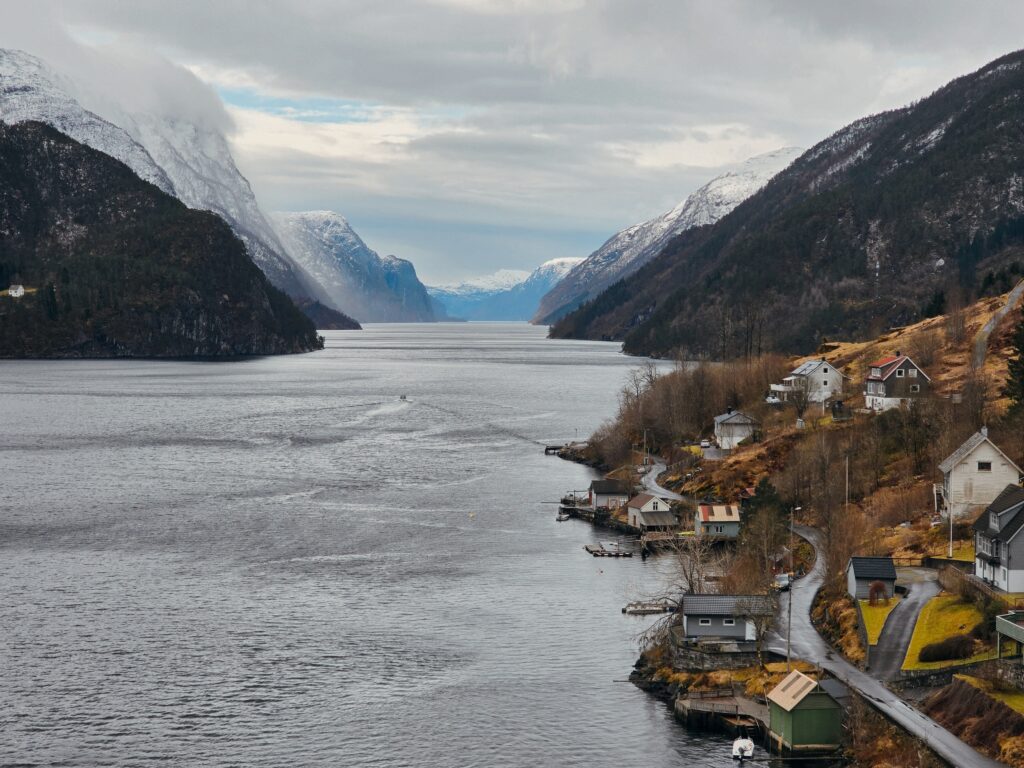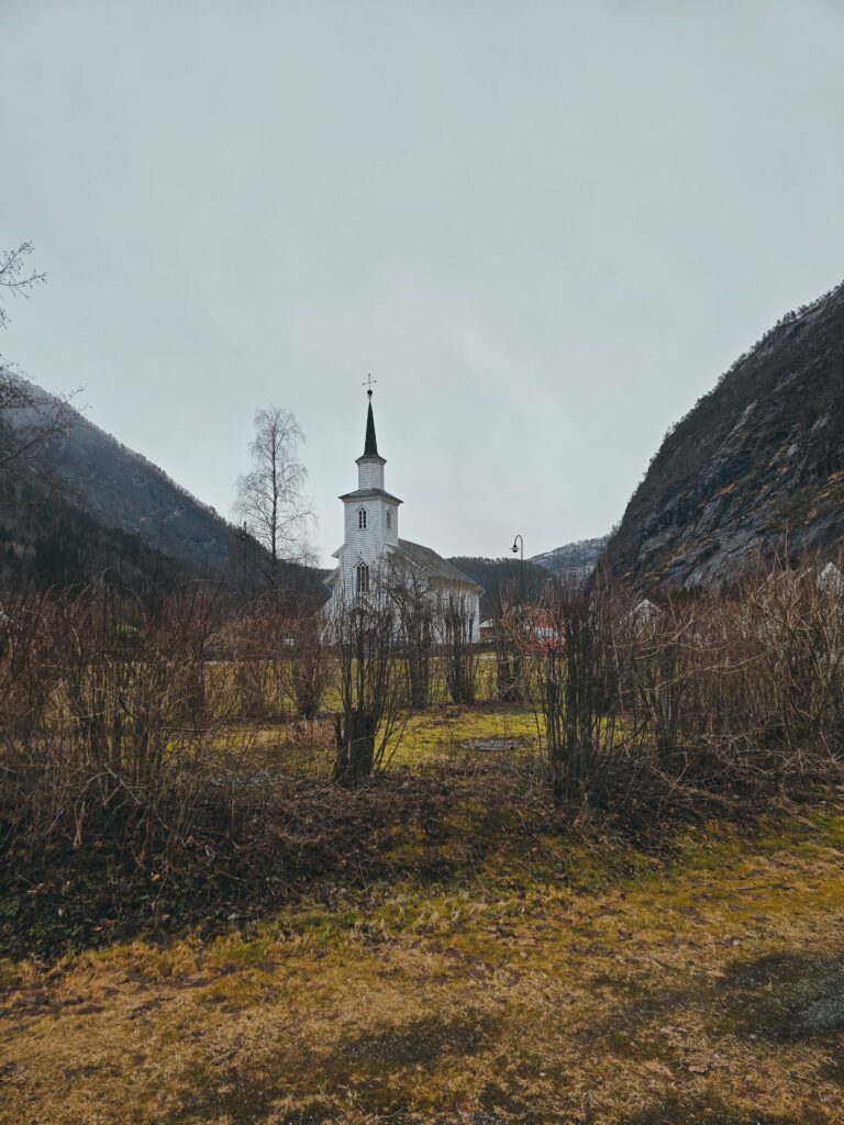 Our journey continues north through the valleys, until we landed in Mo, the serene administrative heart of Modalen. This tiny village is the definition of “fjord-side charm,” nestled where the Mofjorden meets the lush valley floor. With its iconic white wooden church reflecting in the glassy water and a population that feels more like a tight-knit family than a municipality, Mo offers a peaceful pace that’s hard to find elsewhere.
