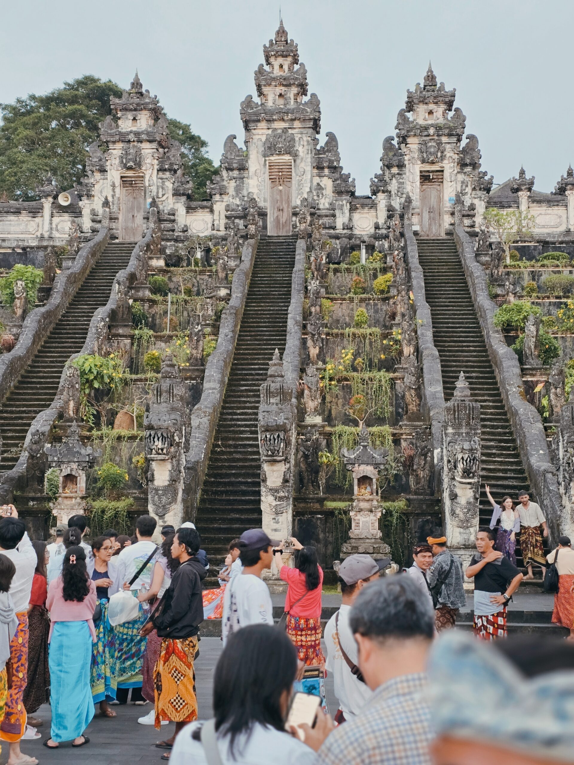 Lempuyang Temple, or Pura Luhur Lempuyang, is one of Bali’s oldest and most sacred temples, perched on the eastern slopes of Mount Lempuyang near Karangasem. Known for its iconic “Gates of Heaven,” this temple offers a breathtaking view of Mount Agung framed perfectly between two intricately carved split gates—a photo that has become synonymous with Bali. On the site there are also the triple split staircases leading to the other temple gates and a smaller gate (like Gates of Heaven but with less people waiting).