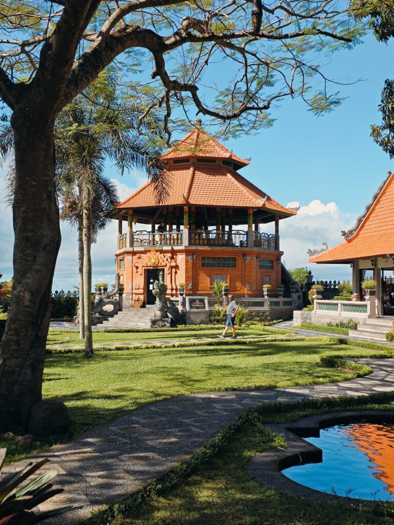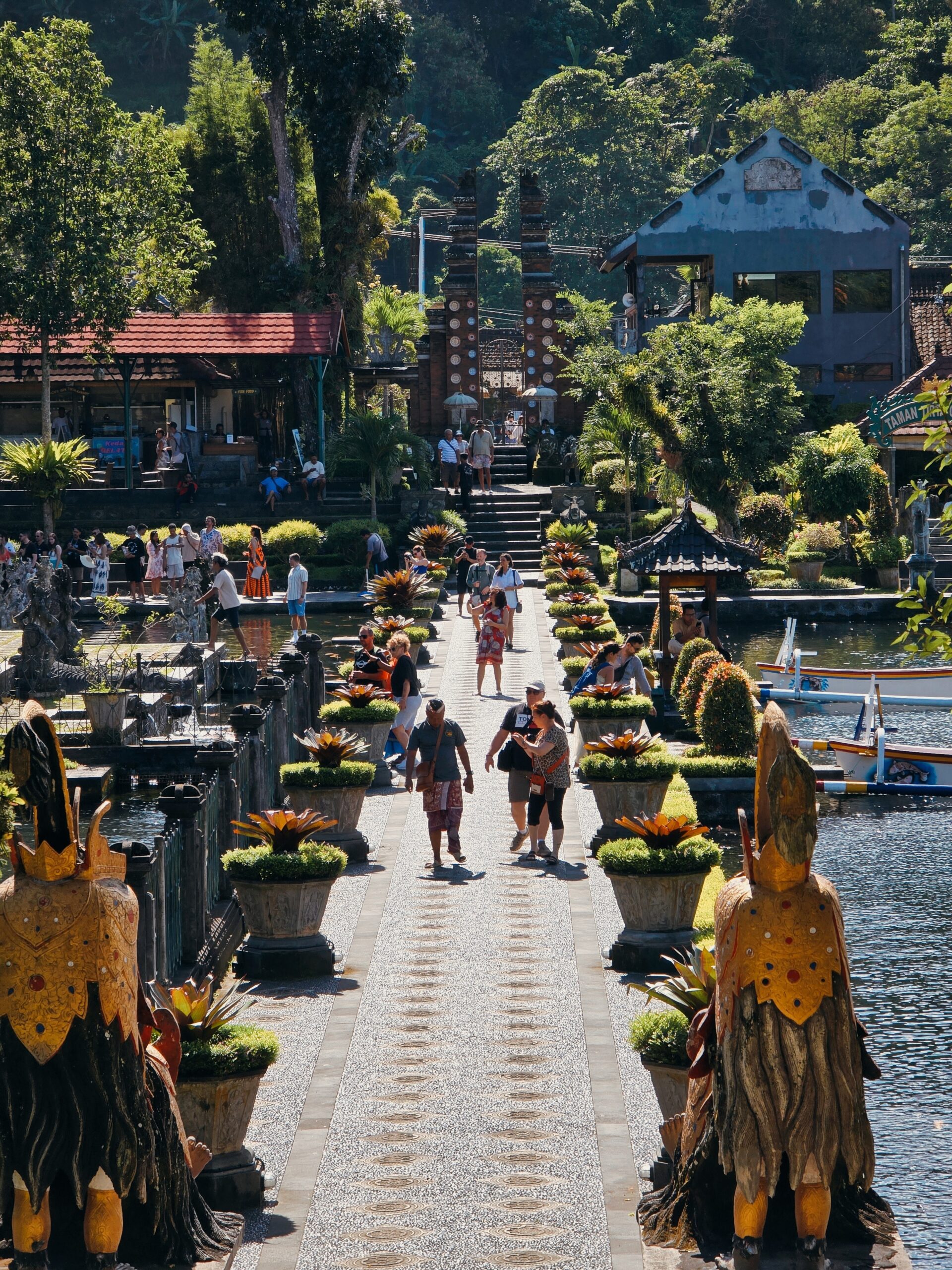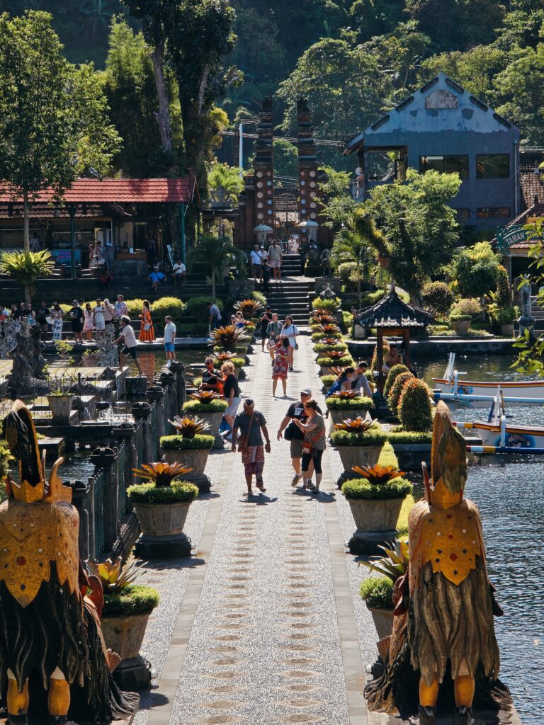 The famous Koi pond… is so much more than that. Tirta Gangga, meaning “Water of the Ganges,” is a stunning former royal water palace located in East Bali, near Karangasem. Built in 1946 by the late King of Karangasem, with pools, tiered fountains, and stone carved statues. The palace is centered around a garden where koi-filled ponds and sacred fountains flow with holy water from nearby natural springs. One of the most iconic features is the stepping stones that allow visitors to walk across the main pond, surrounded by water and colorful fish. Take a minute to walk around, visit the mini museum and the balcony just above it for a wonderful view of the premises.