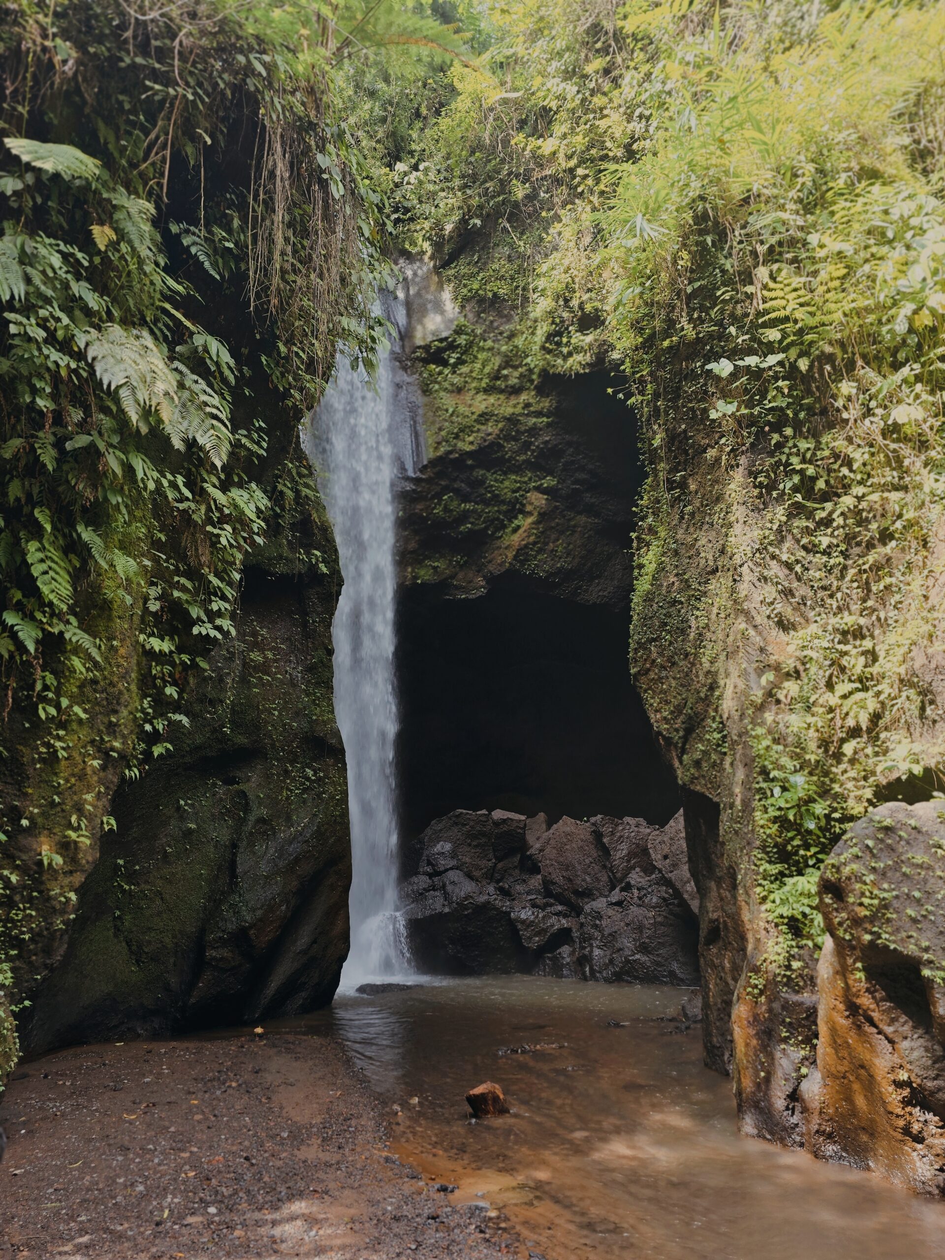 Goa Raja, meaning “King’s Cave,” is a serene waterfall nestled inside a mossy canyon near the village of Jehem, not far from Tukad Cepung. Accessible via a short, slightly slippery trail through jungle and river crossings, it offers a peaceful and less touristy alternative. The waterfall tumbles about 25 meters into a shallow pool within a cavernous space. Its name is rooted in local legend, believed to be linked to ancient kings or holy hermits who meditated in the caves nearby. Goa Raja is a gem for those who enjoy quiet exploration and natural beauty—without the crowds.