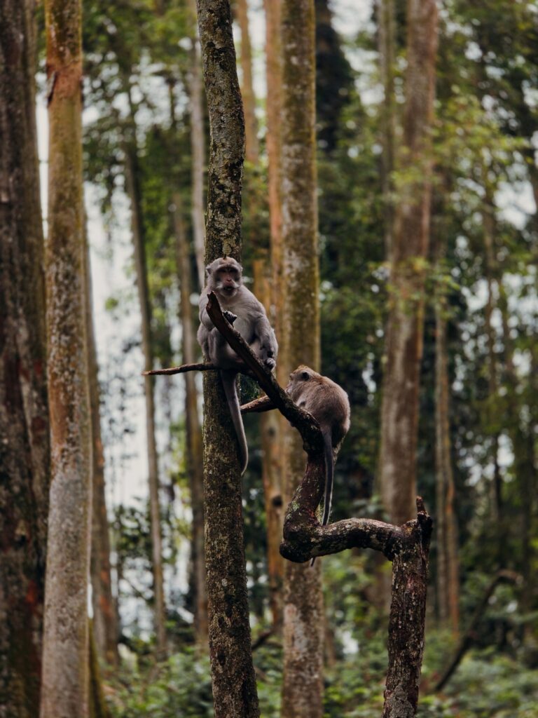 So, this was an essential part of our trip and we wanted the best experience possible. On my research I found out the monkeys at Sangeh are calmer and friendlier than those at Ubud Monkey Forest, though the place was smaller and around a 50-minute drive from Ubud. When we arrived, clearly we chose well. The forest is stunningly beautiful. Home to roughly 500-700 macaques living in tribes under 40m nutmeg, mahogany and guava trees.