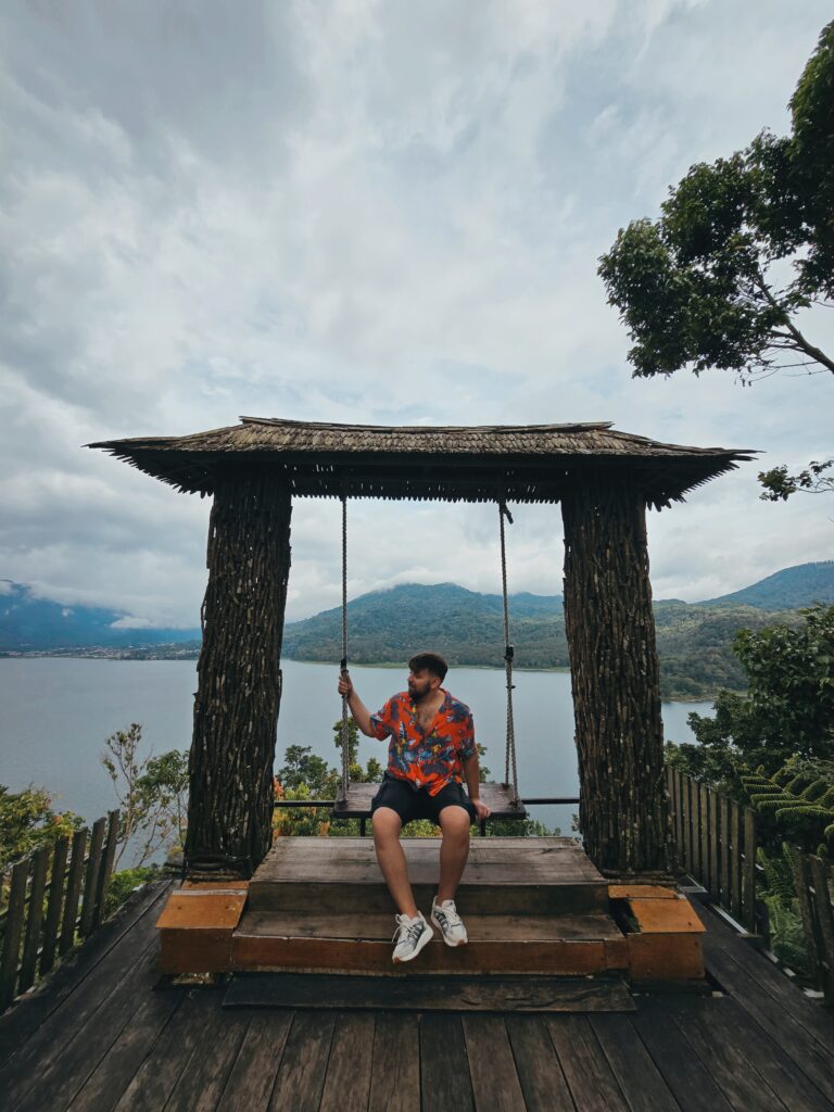 It’s a site made for Instagram, located in northern Bali, above the twin lakes of Buyan and Tamblingan. The site features whimsical photo installations—giant swings, human‑sized bird nests, bamboo platforms, boat-shaped decks, and even wicker hearts. The entrance fee is around €6 (IDR 114,000) but once we were inside, we could take pictures anywhere we wanted without extra charge (with or without the on-site photographer).