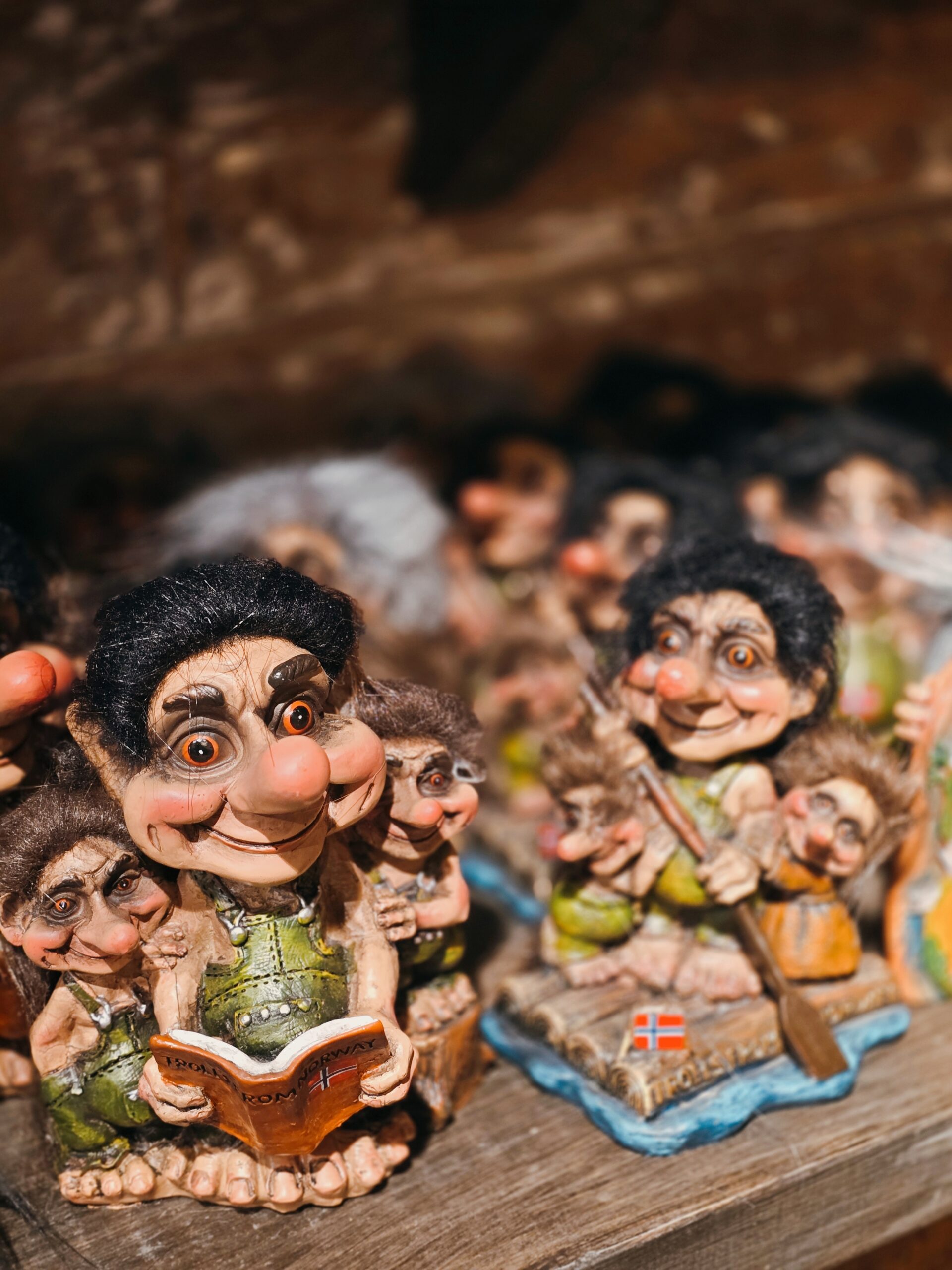 If you walk around Bryggen you will discover cute little shops hidden in alleys, with more crafts and arts by locals instead of the tourist stuff you will find on the wharf. You will also see a plethora of trolls in shops. This is anything but random.