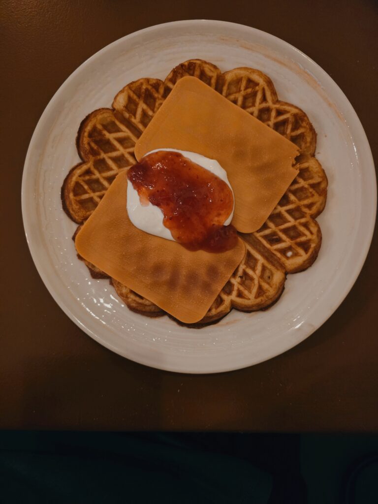 We tried it on a waffle, in Kaf Kafe, with strawberry jam and it was truly, unexpectedly delicious.