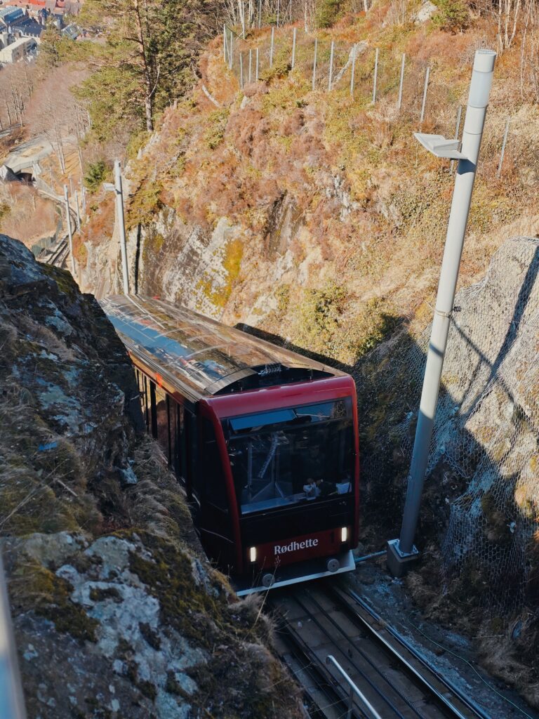 At the top, there is a viewing platform that offers wide views over Bergen’s harbor, surrounding mountains, and fjords. You can find a café, a restaurant, playgrounds and a shop.