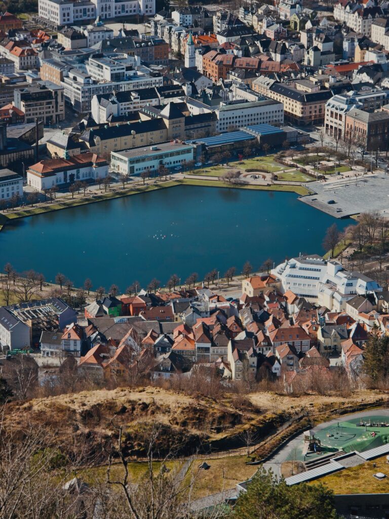 This is one of the most popular viewpoints in Bergen, located about 320 meters above sea level. It can be reached either by hiking up from the city center or by taking the Fløibanen funicular (145 NOK / €13 for a return ticket on low tourist season and 200–220 NOK / €19 on peak seasons), which runs regularly throughout the day.