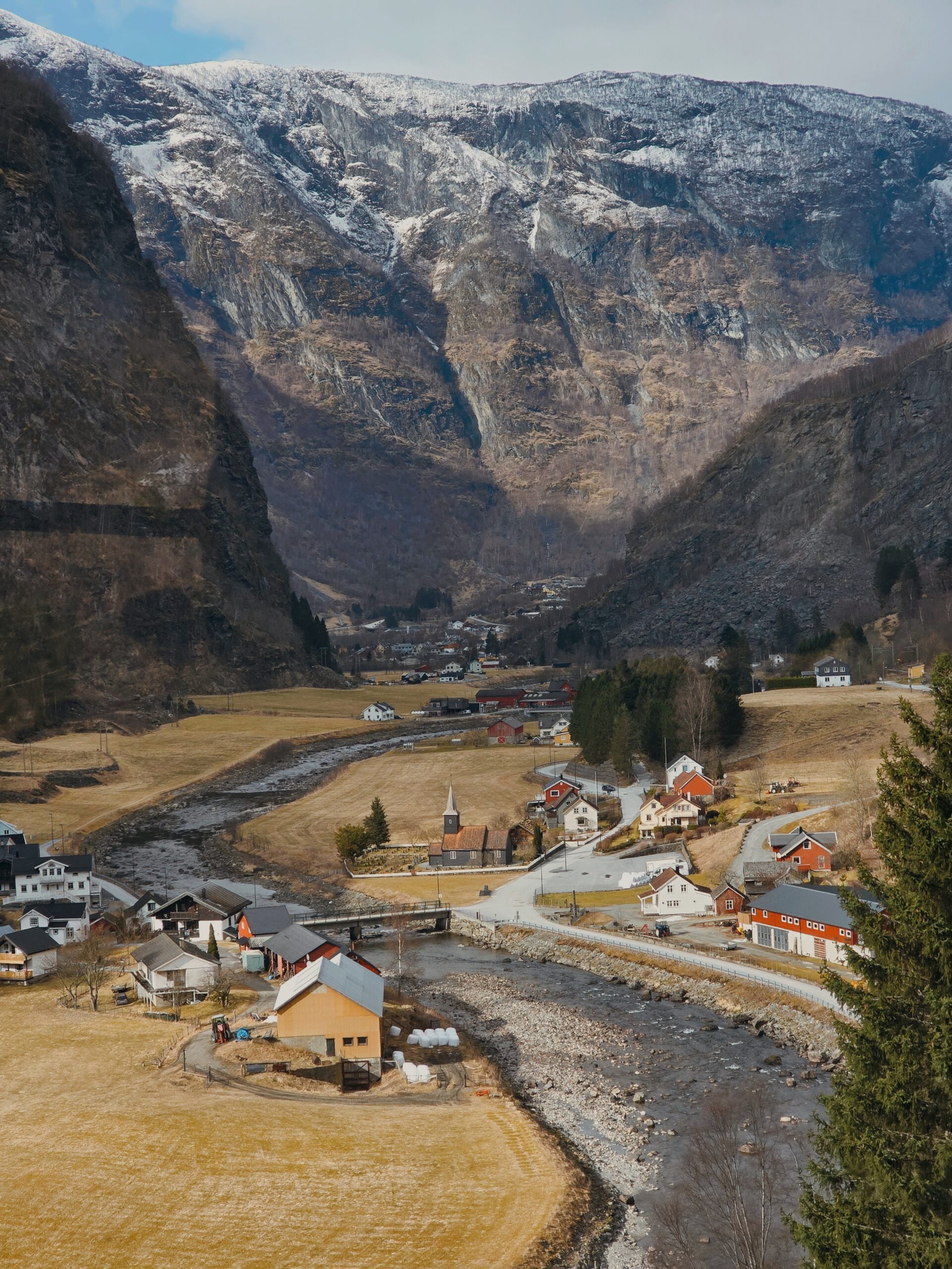 Let’s start from Flåm though! Its name literally translates to “plain” or “flat land” in Old Norse and its nestled at the innermost point of the Aurlandsfjord. It’s a tiny village that makes a big impression.