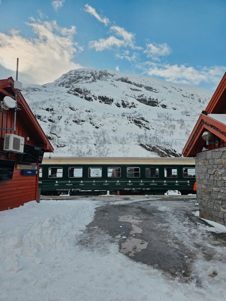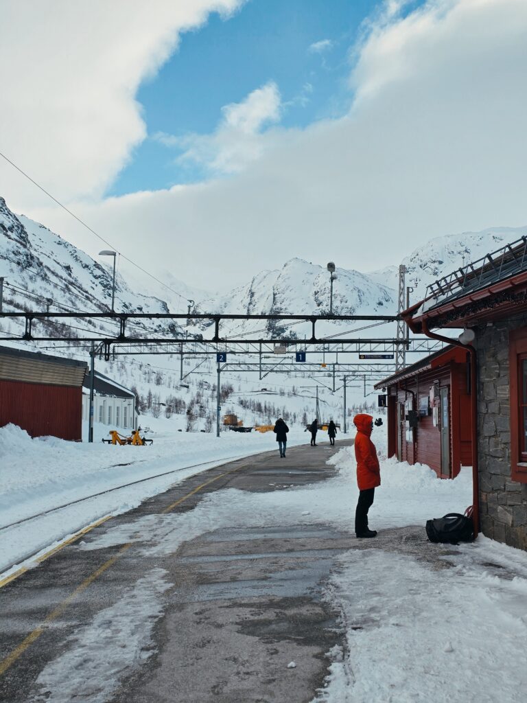Most people were going back Flåm, taking a train to Oslo or the fast train to Bergen so we ended up almost alone in a station covered in snow. It has vending machines and tables to sit and relax until its your time to board, but it all felt quite post-apocalyptic very quickly.