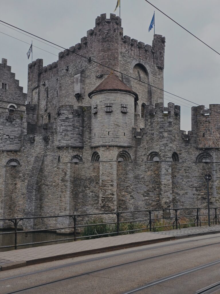 I was following the curve of the canal, walking in the quieter streets, when I came across the Castle of the Counts – a massive grey fortress rising out of the middle of the city – looking like it’s been pulled straight from a medieval legend. Originally built in 1180 by Count Philip of Alsace, it served as the residence of the Counts of Flanders for a time, but over the centuries, it took on very different roles — it became a court, a prison, and later even housed a textile factory in the 19th century.